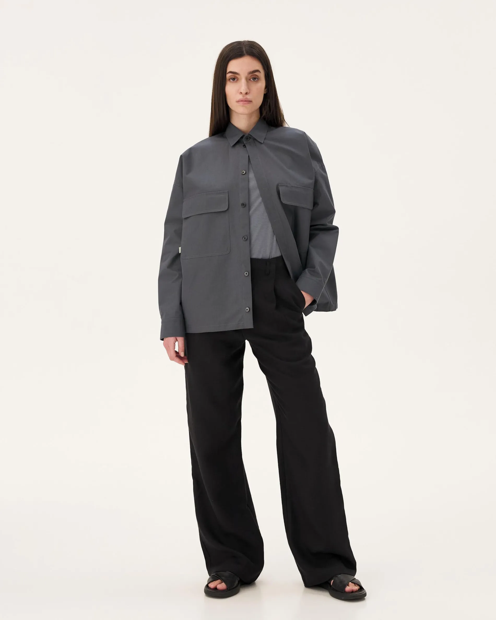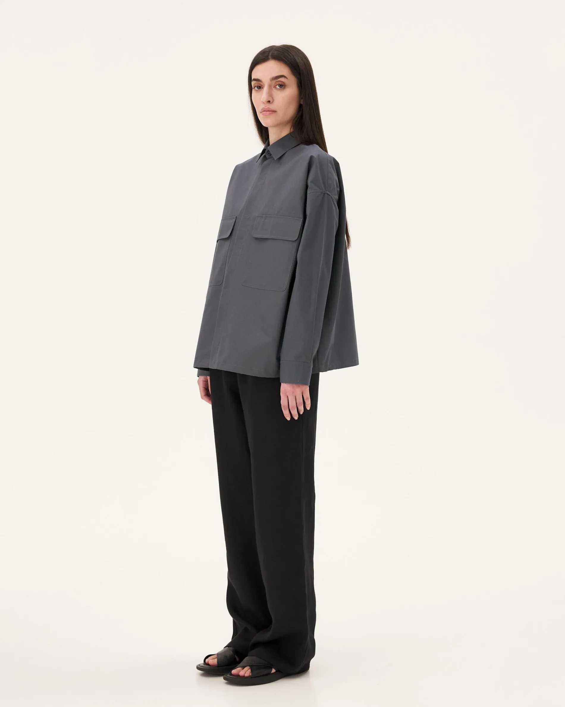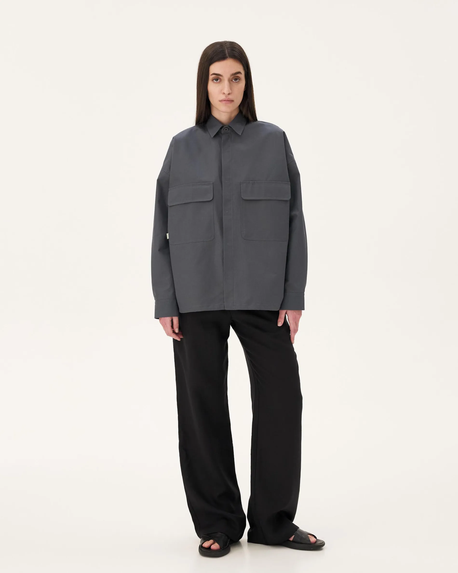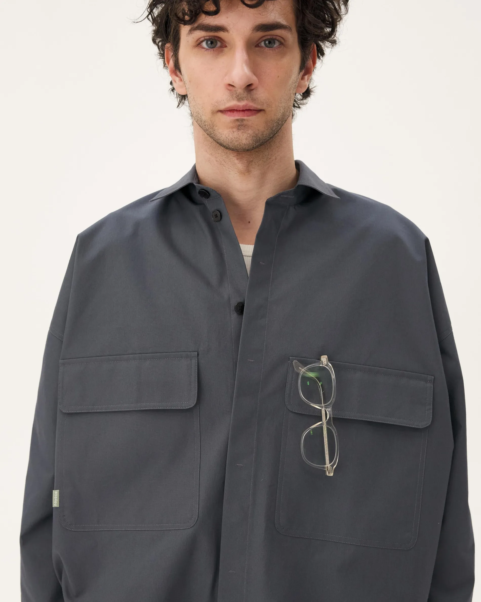 La surchemise Utah est inspirée du vestiaire utilitaire. Pensée comme une chemise pratique et adaptable elle est dotée de grande poches plaquées avec une fente stylo, d’un cordon de serrage réglable et d’une patte de boutonnage cachée. Confectionné dans une toile technique déperlante en coton biologique, elle résistera aux intempéries et se patinera avec le temps.