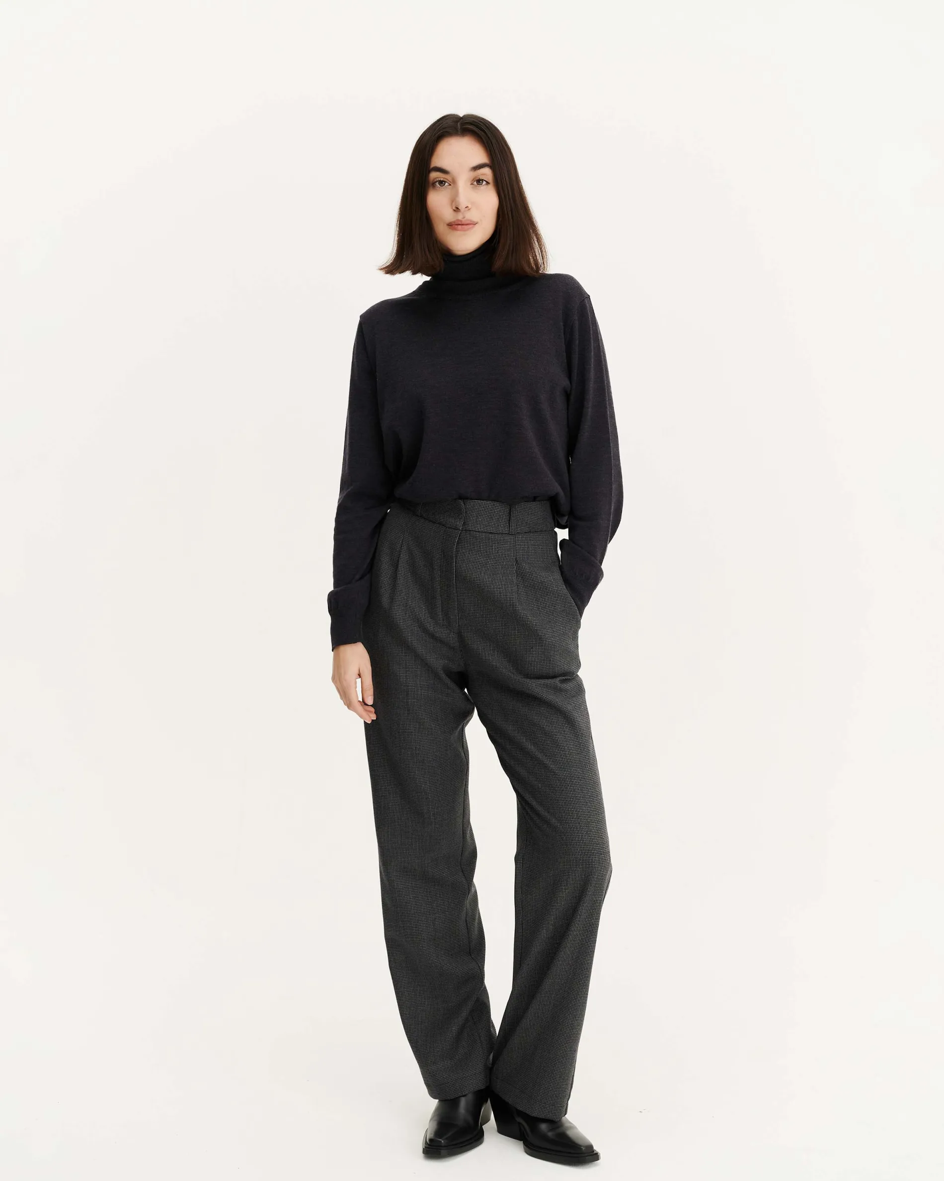 Le pull col roulé fin unisexe noyoco confectionné en 100% laine merinos. Coupe ajustée avec encolure et poignets côtelés. Chaque pièce du vestiaire noyoco est fabriquée en Europe, de la matière au vêtement.