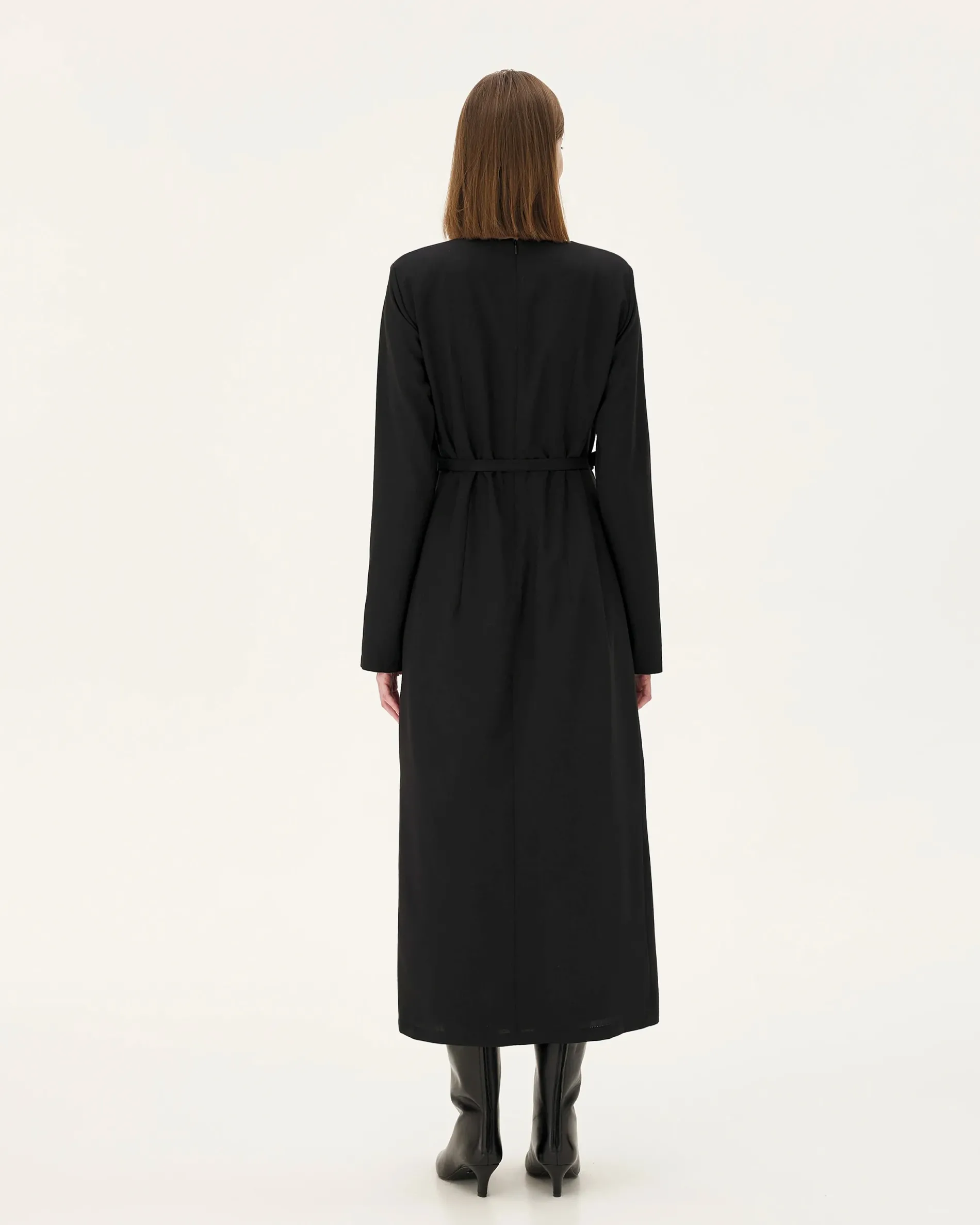 – 100% laine, tissu upcyclé- Coupe près du corps, taille ajustable avec un lien- Fines épaulettes- Encolure bateau- Fente côté jusqu’à mi cuisse- Fabriquée dans nos ateliers partenaires en Roumanie