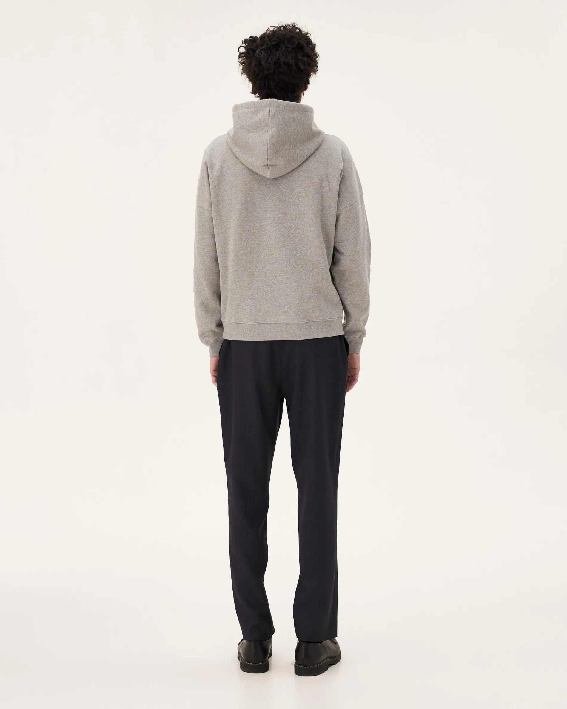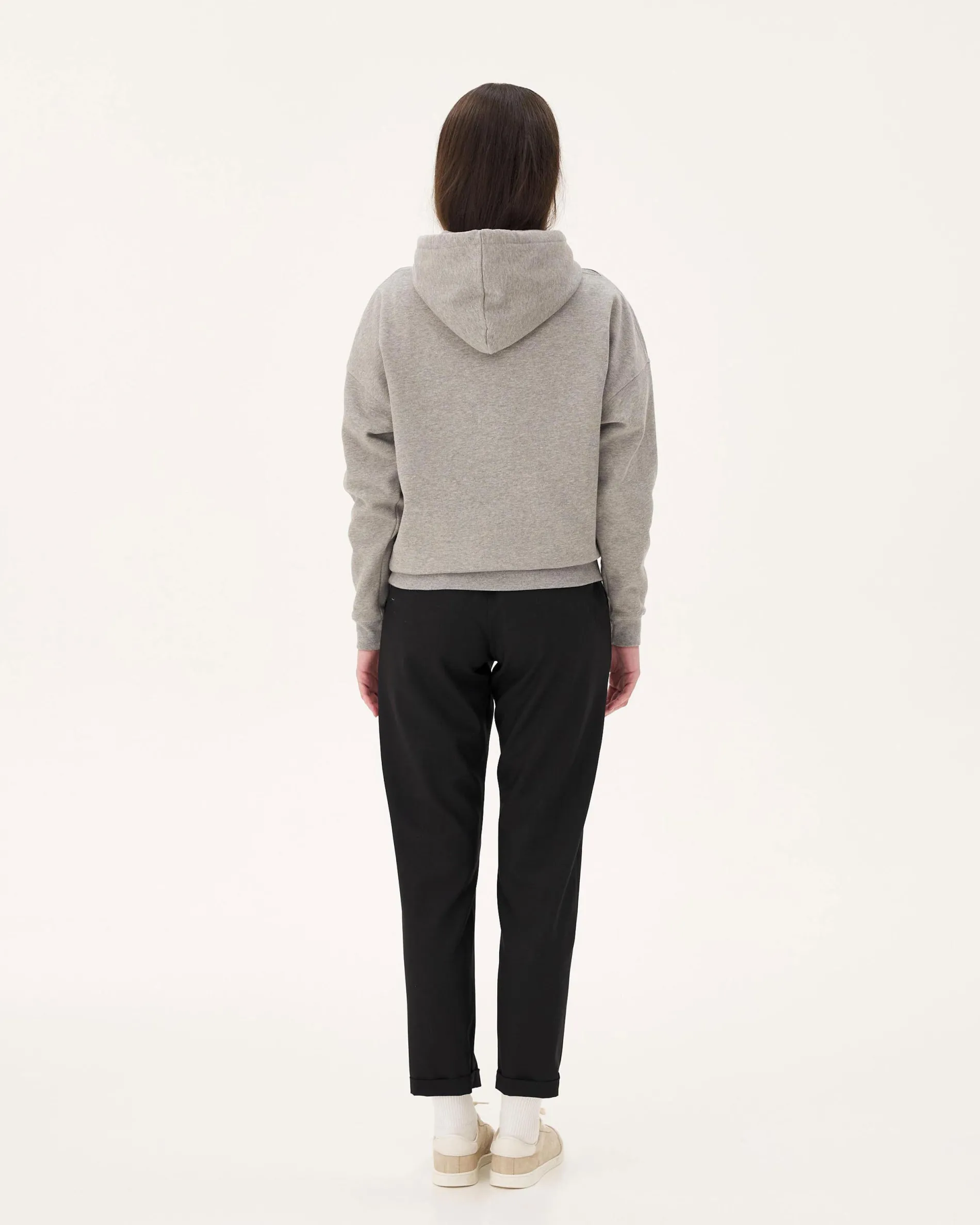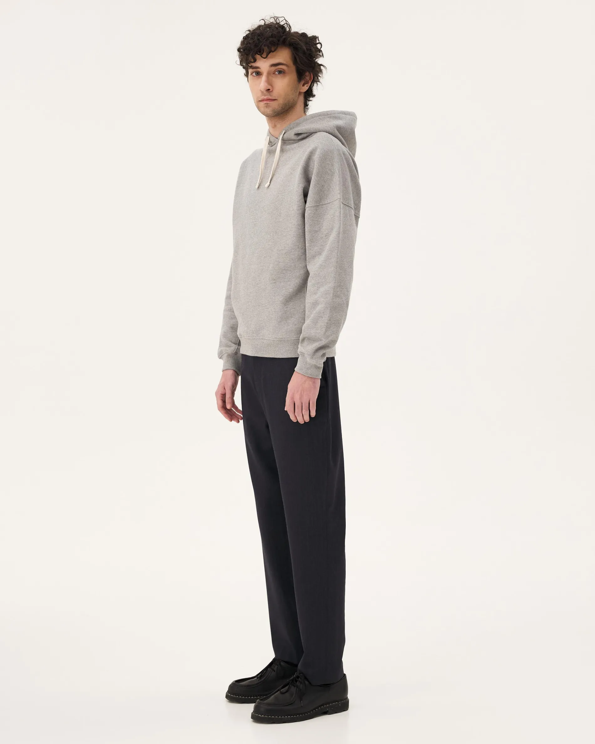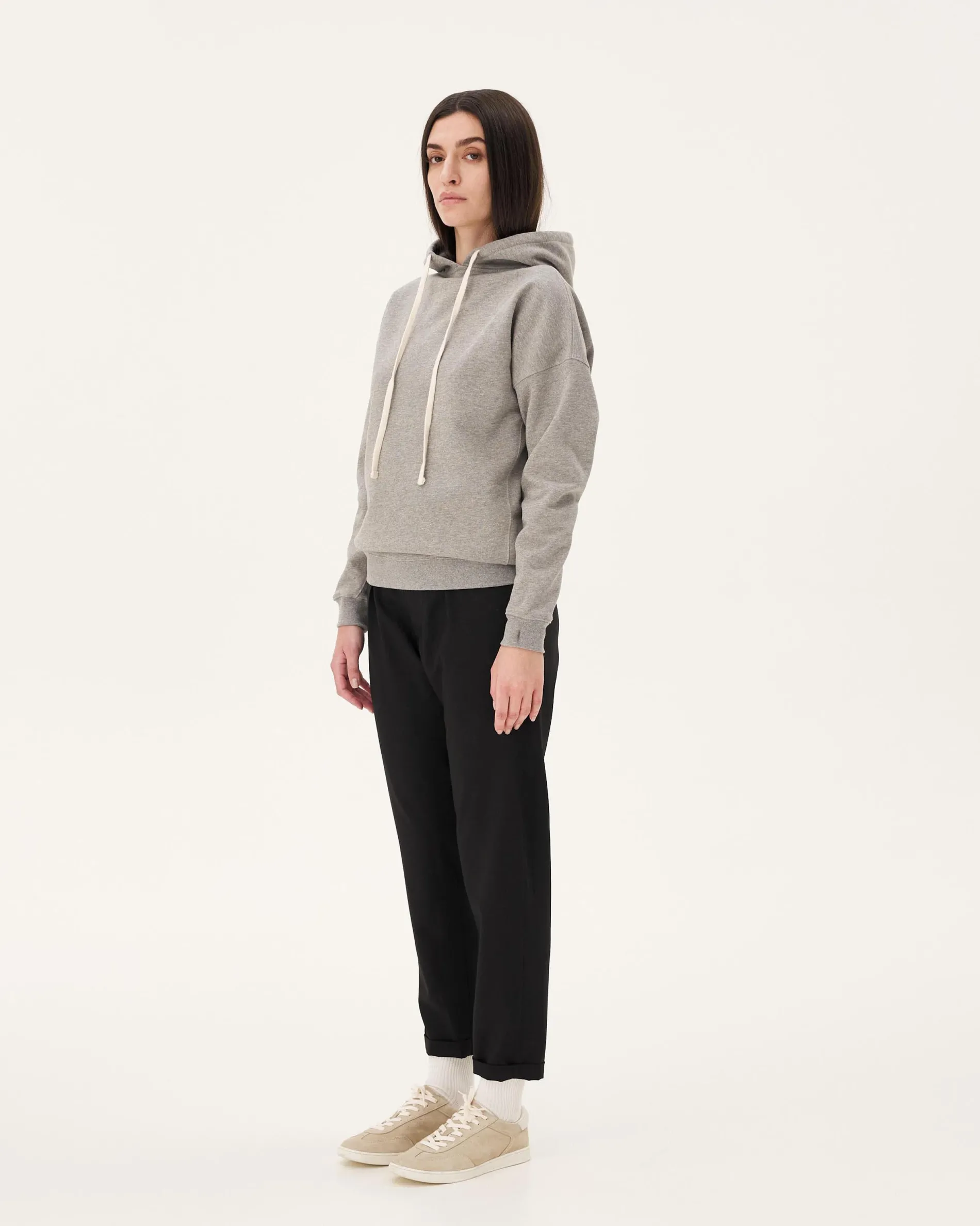 Le hoodie Boston est confectionné dans un jersey légèrement chiné, épais et résistant. La pièce présente un col rond classique, des manches droites ainsi que des finitions côtelées. Il est confectionné en coton biologique de qualité supérieure. Sa structure lisse au toucher est brossé sur l’envers.
