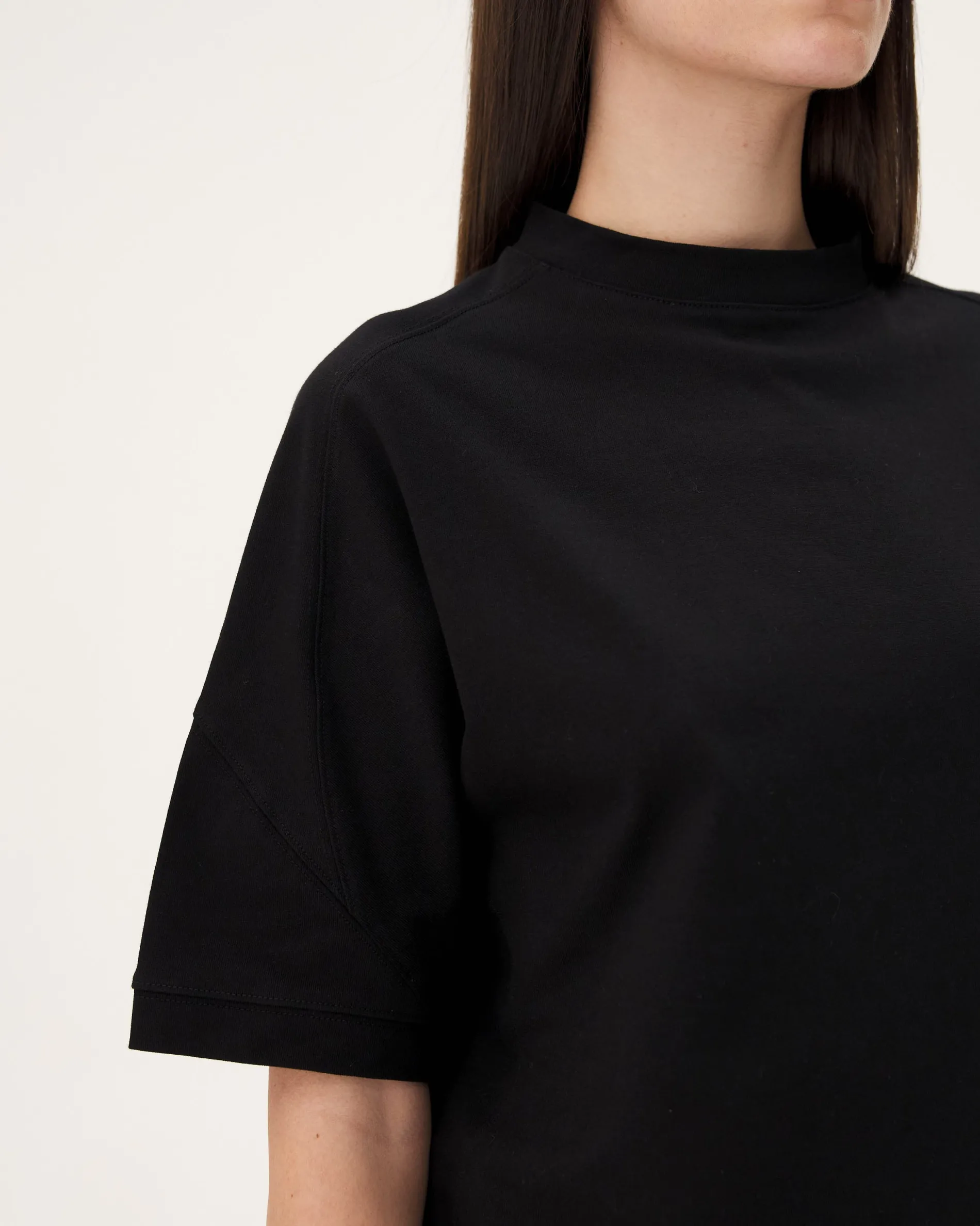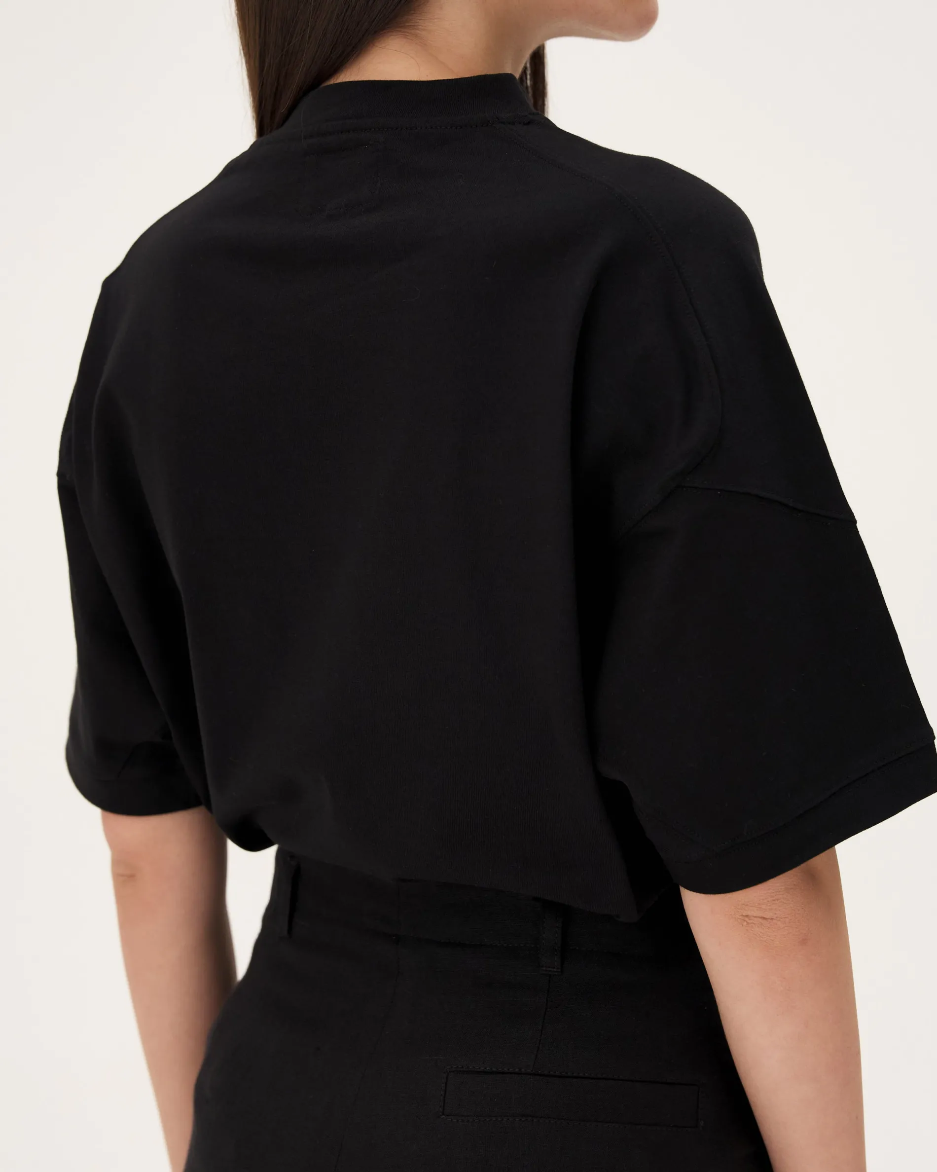 Le tee-shirt Haria est une pièce oversize du vestiaire unisexe. Confectionné dans un jersey moyen à la texture délicate en coton biologique. La pièce présente un travail important de découpes et d’incrustations surpiquées en chemin de fer. Une alternative aux tee-shirts classiques avec un volume décontracté.