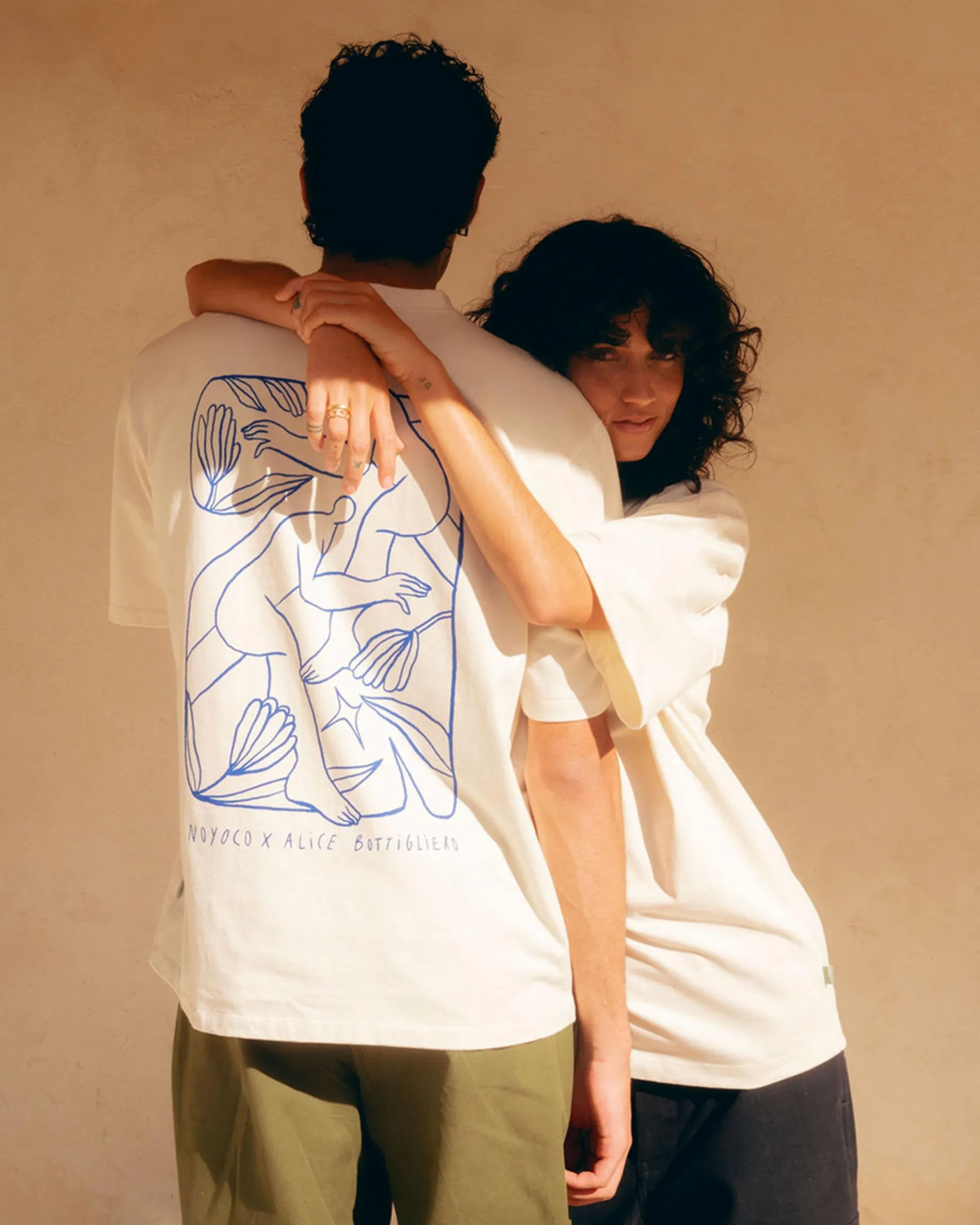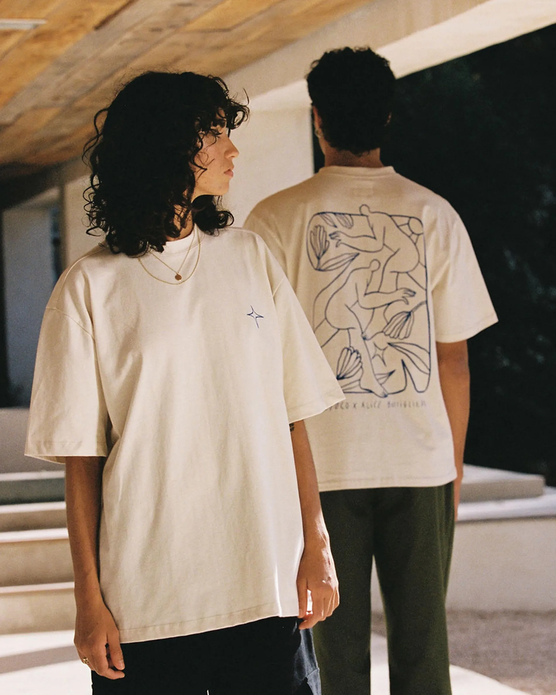 – 100% coton biologique- Illustration imaginée en collaboration avec l’artiste @alice.bottigliero- Coupe oversize droite- Manches courtes- Col rond côtelé légèrement montant- Fabriqué au Portugal