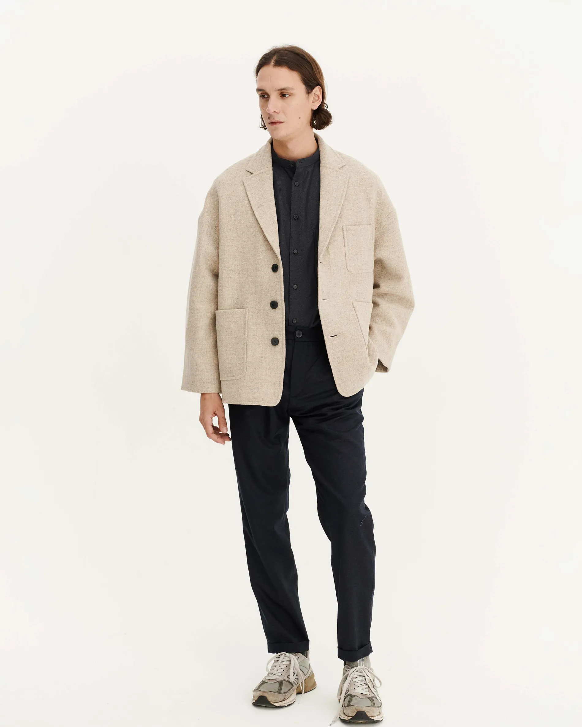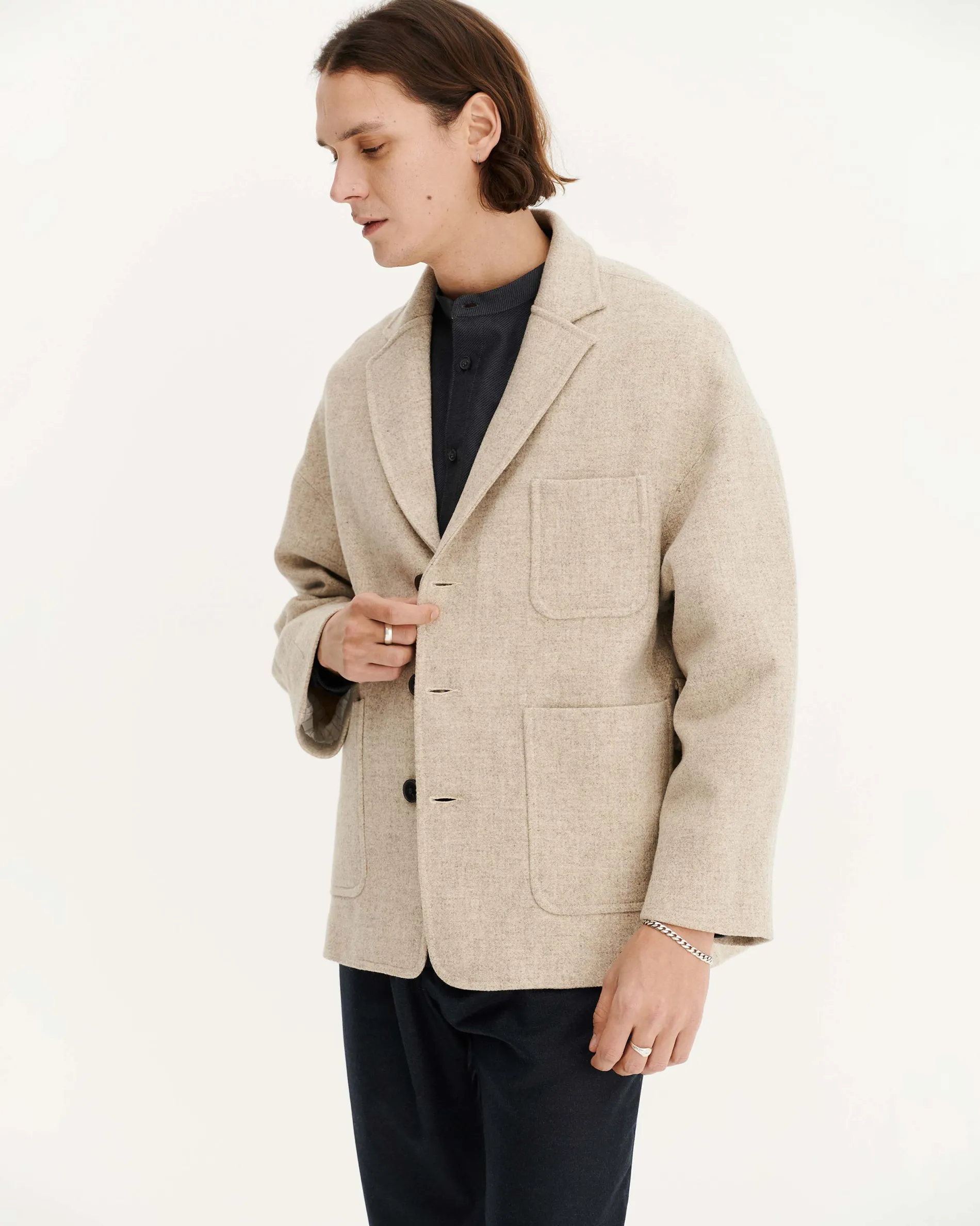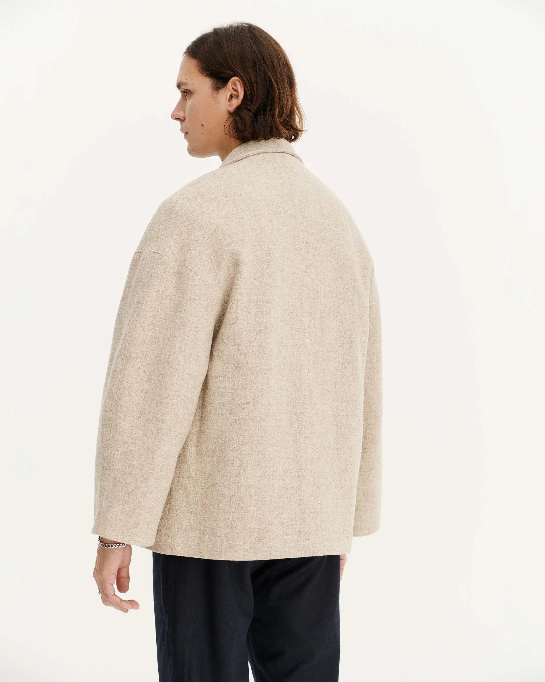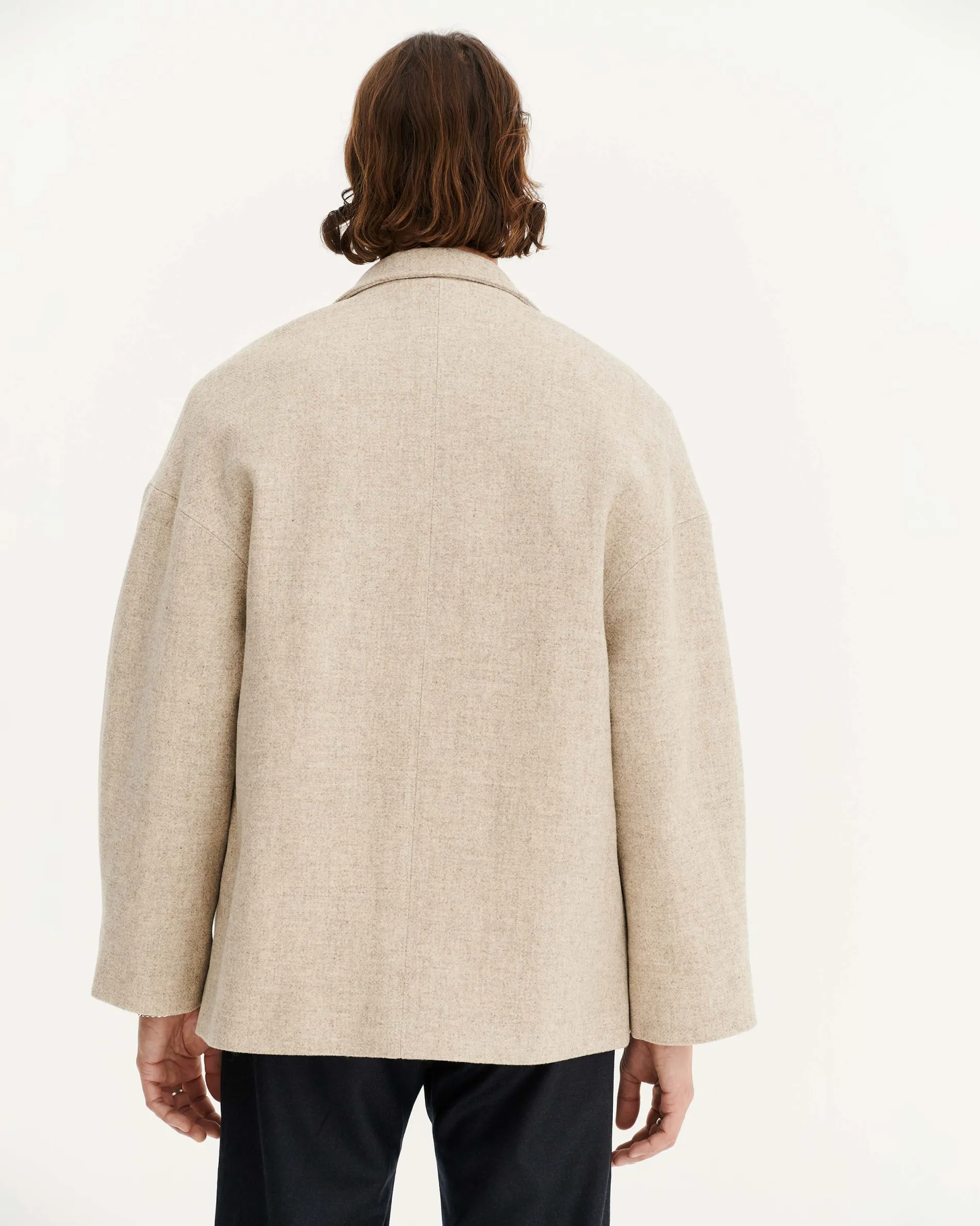 Le manteau court unisexe noyoco confection en 100% laine. Coupe ample droite et ceinture amovible pour une silhouette plus définie. Doublure intérieure en 100% coton biologique et doublure des manches en 100% viscose certifiée FSC (Forest Stewardship Council). Poche poitrine plaquée et poches avant. Boutons en bio résine. Chaque pièce du vestiaire noyoco est fabriquée en Europe, de la matière au vêtement.