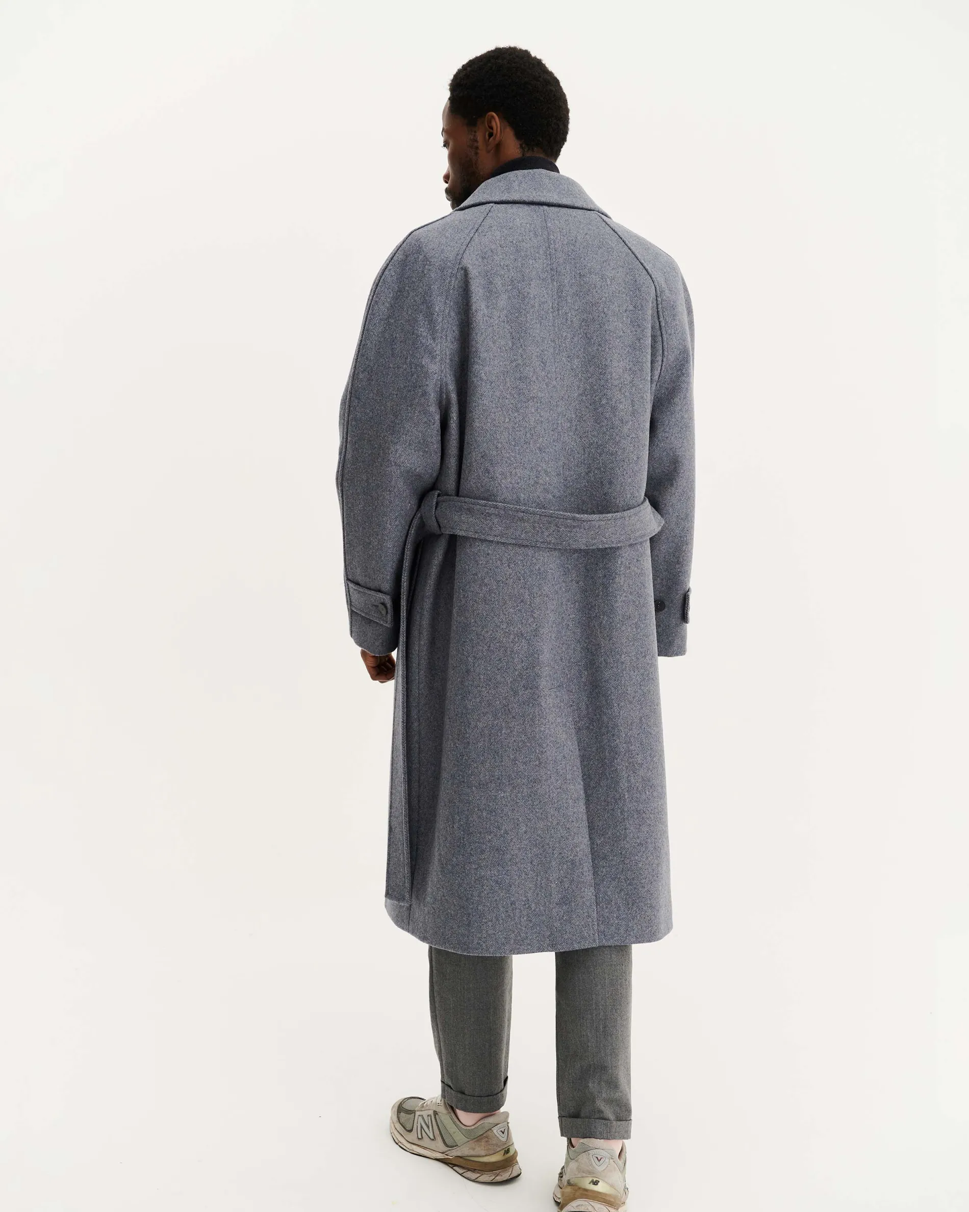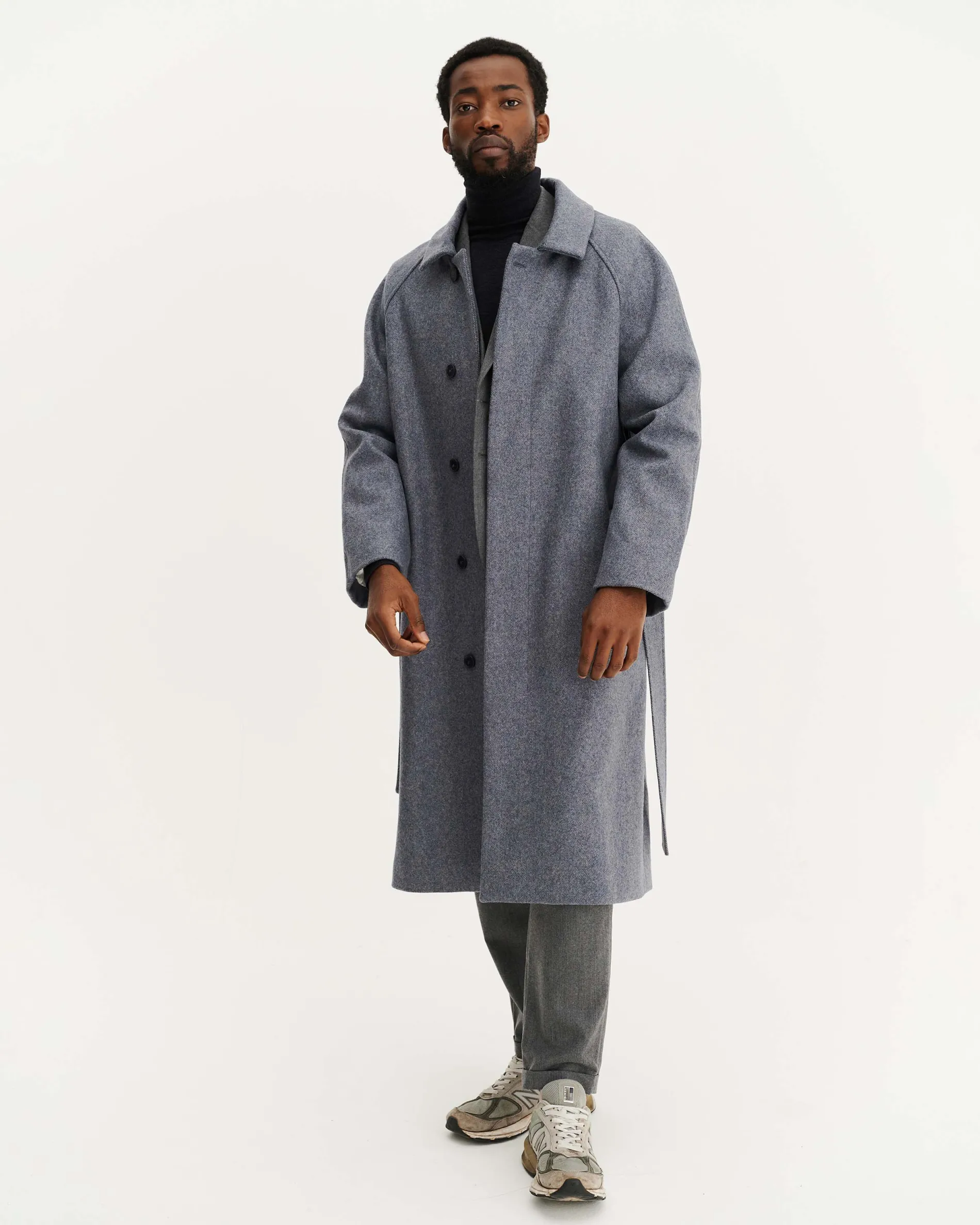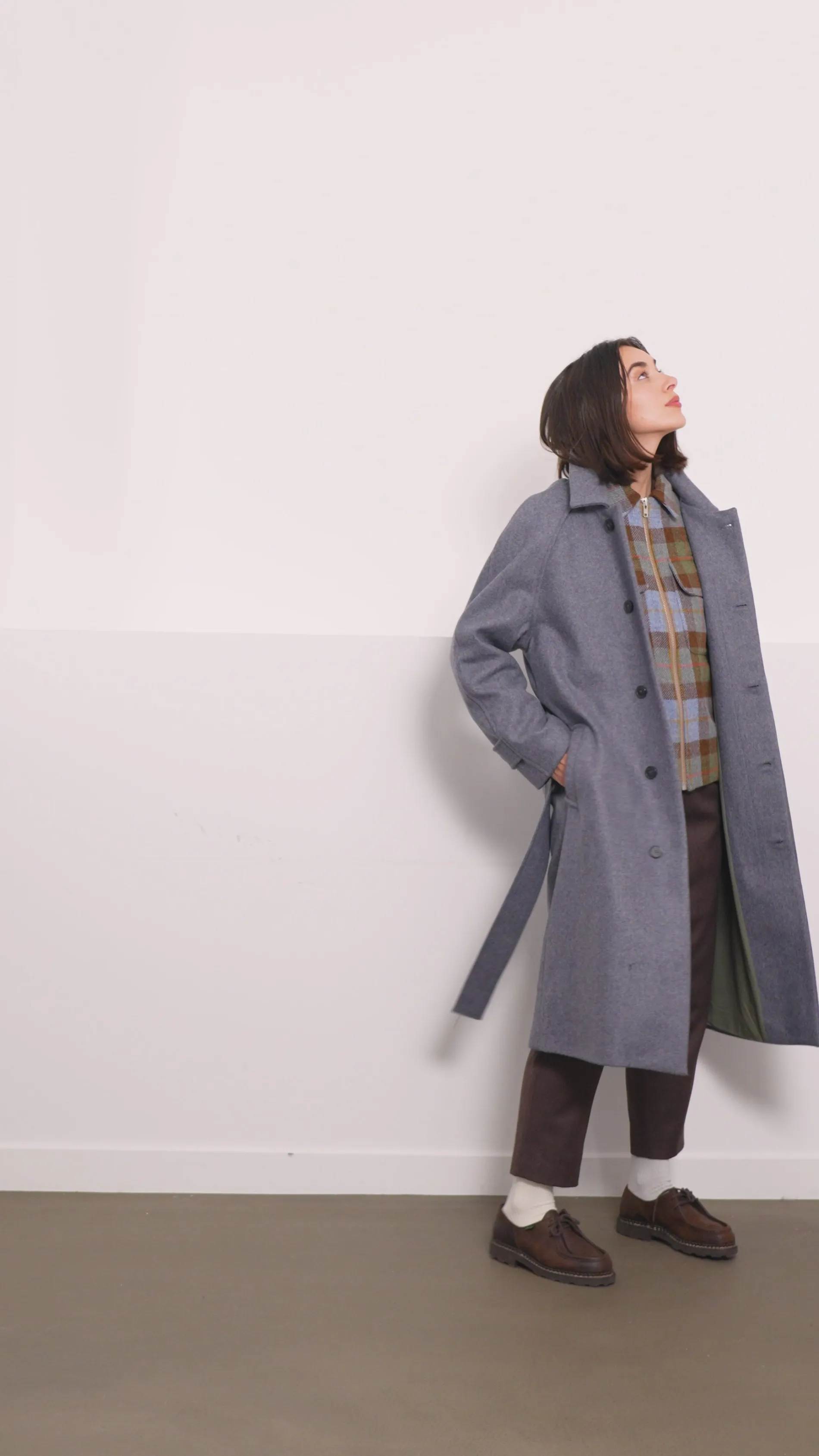 Le manteau long unisexe noyoco confectionné en laine vierge. Doublure intérieure en 100% coton biologique et doublure des manches en 100% viscose certifiée FSC (Forest Stewardship Council). Ceinture, manches et poches raglans. Boutons en ivoire végétal. Chaque pièce du vestiaire noyoco est fabriquée en Europe, de la matière au vêtement.