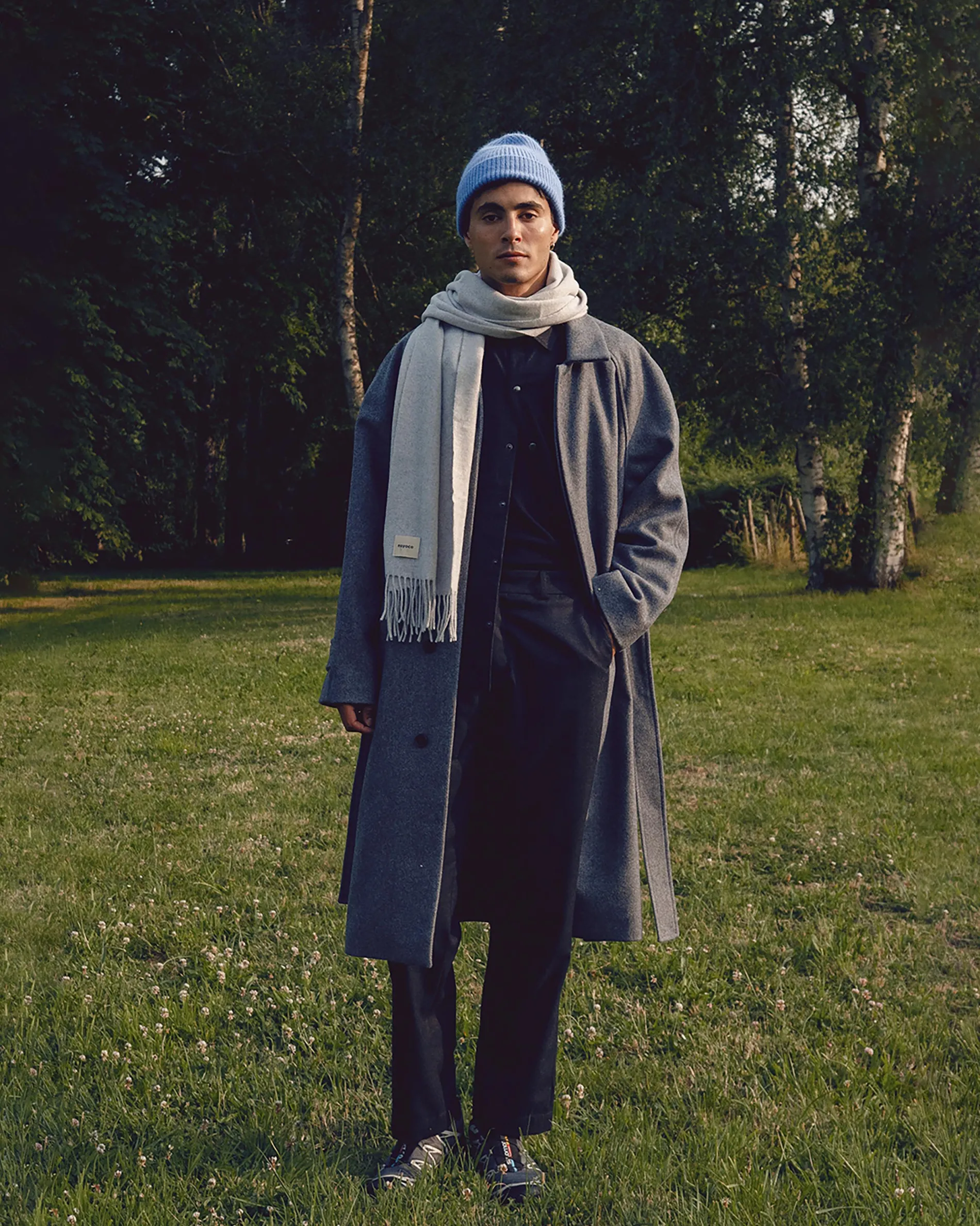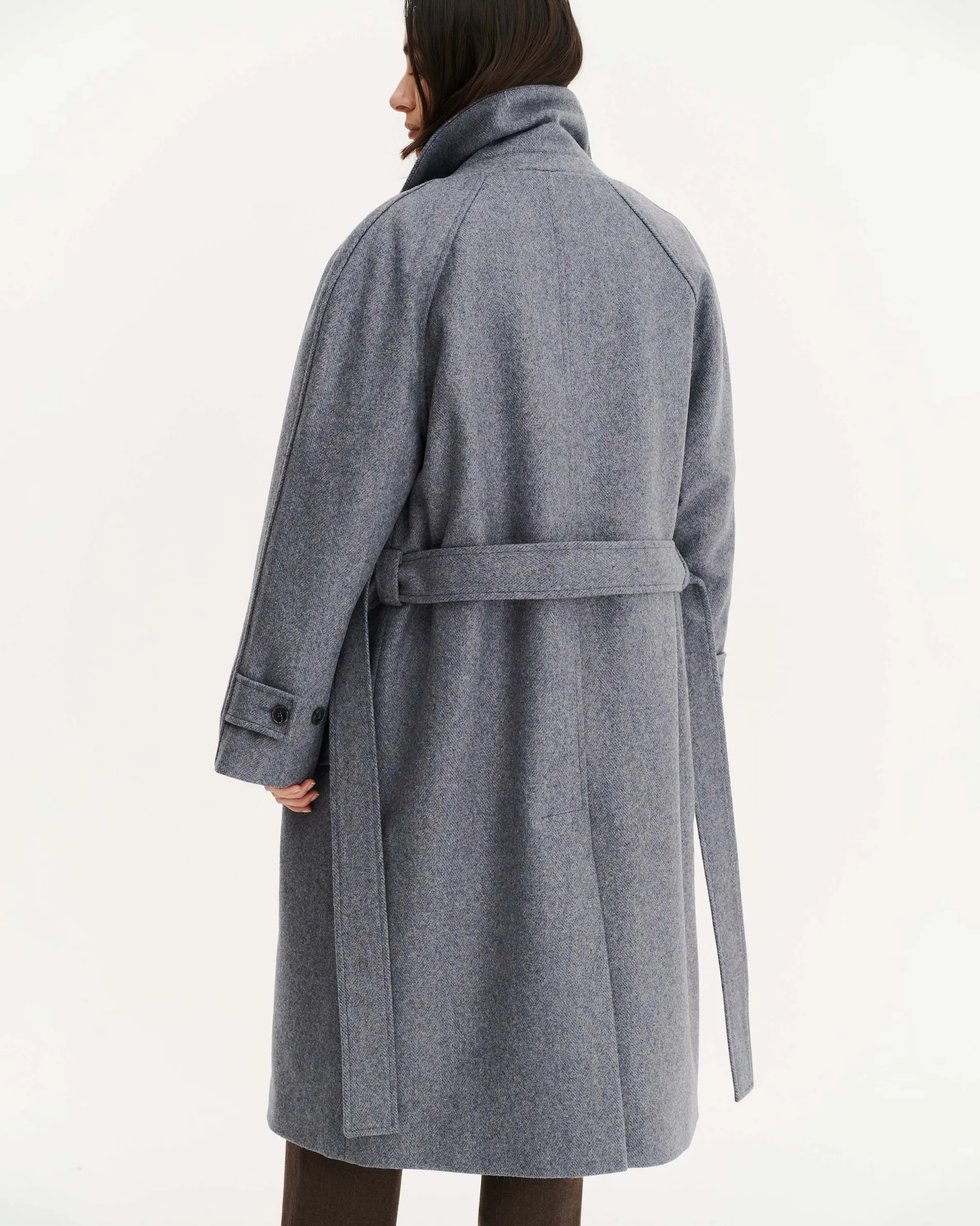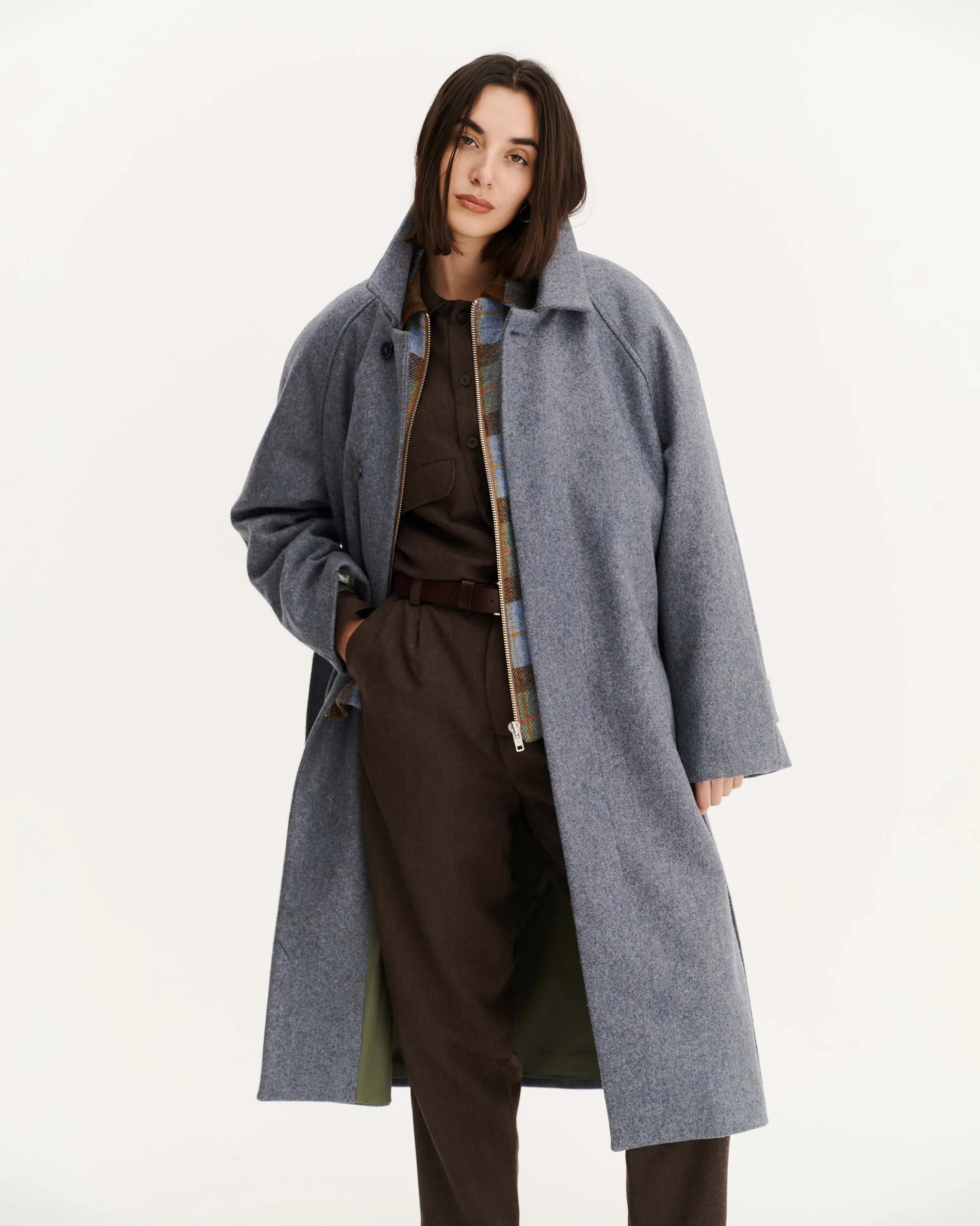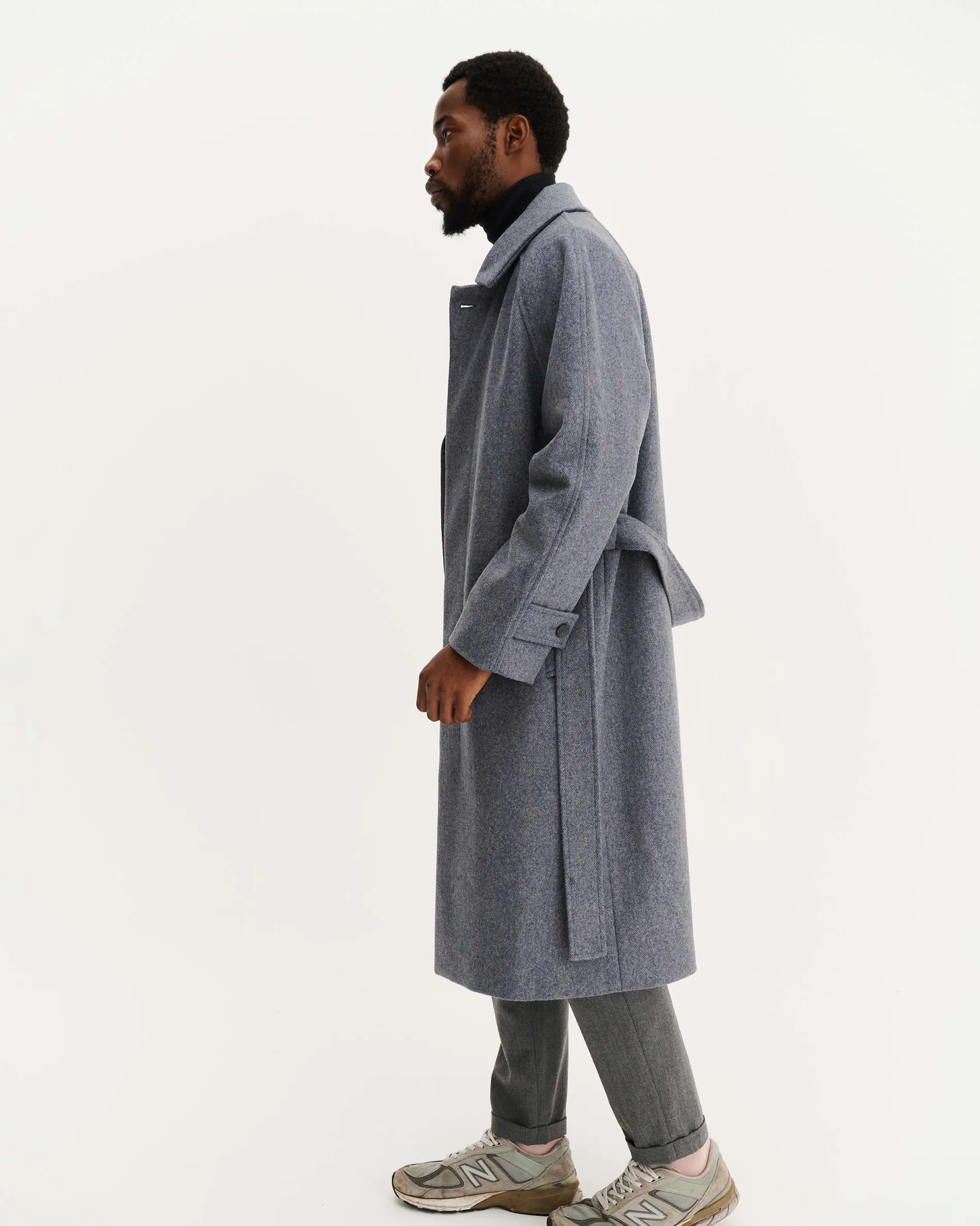 Le manteau long unisexe noyoco confectionné en laine vierge. Doublure intérieure en 100% coton biologique et doublure des manches en 100% viscose certifiée FSC (Forest Stewardship Council). Ceinture, manches et poches raglans. Boutons en ivoire végétal. Chaque pièce du vestiaire noyoco est fabriquée en Europe, de la matière au vêtement.