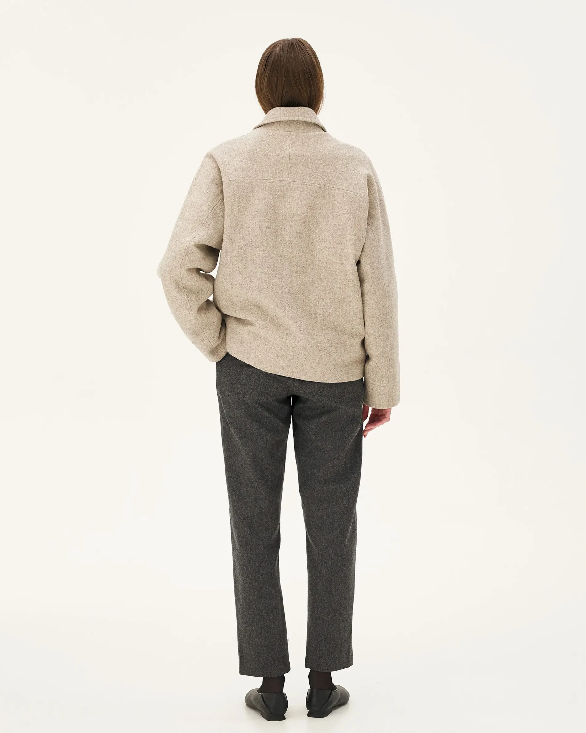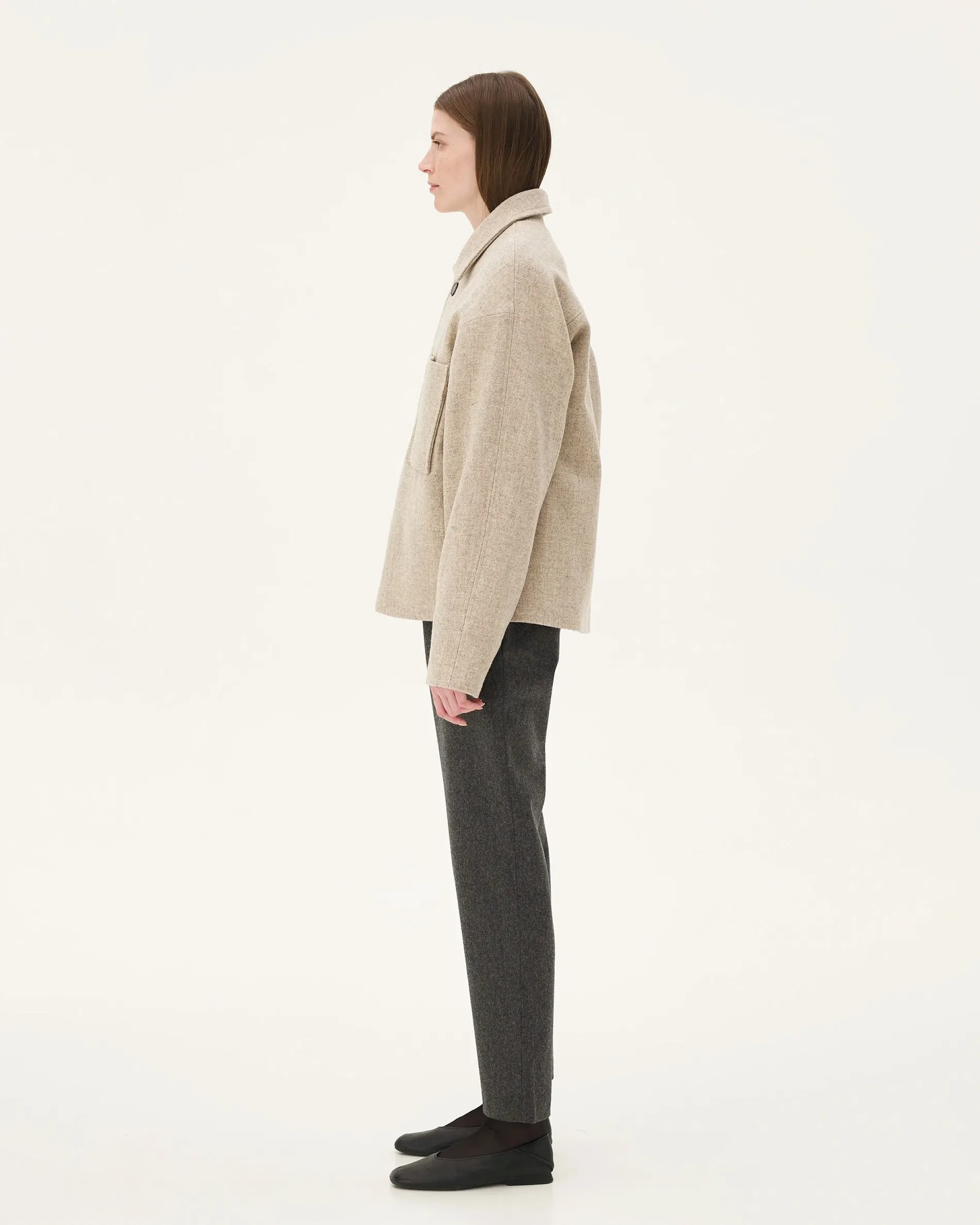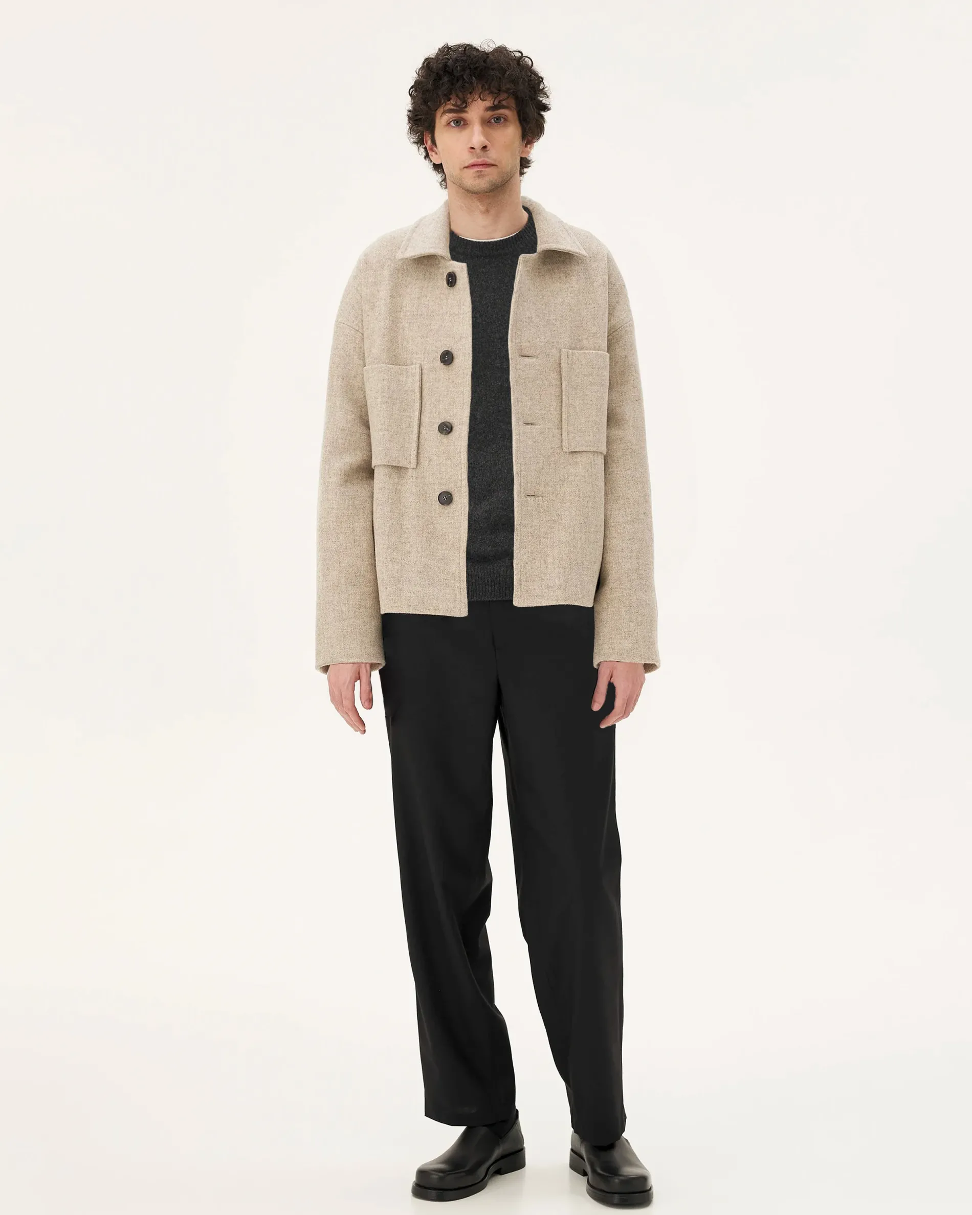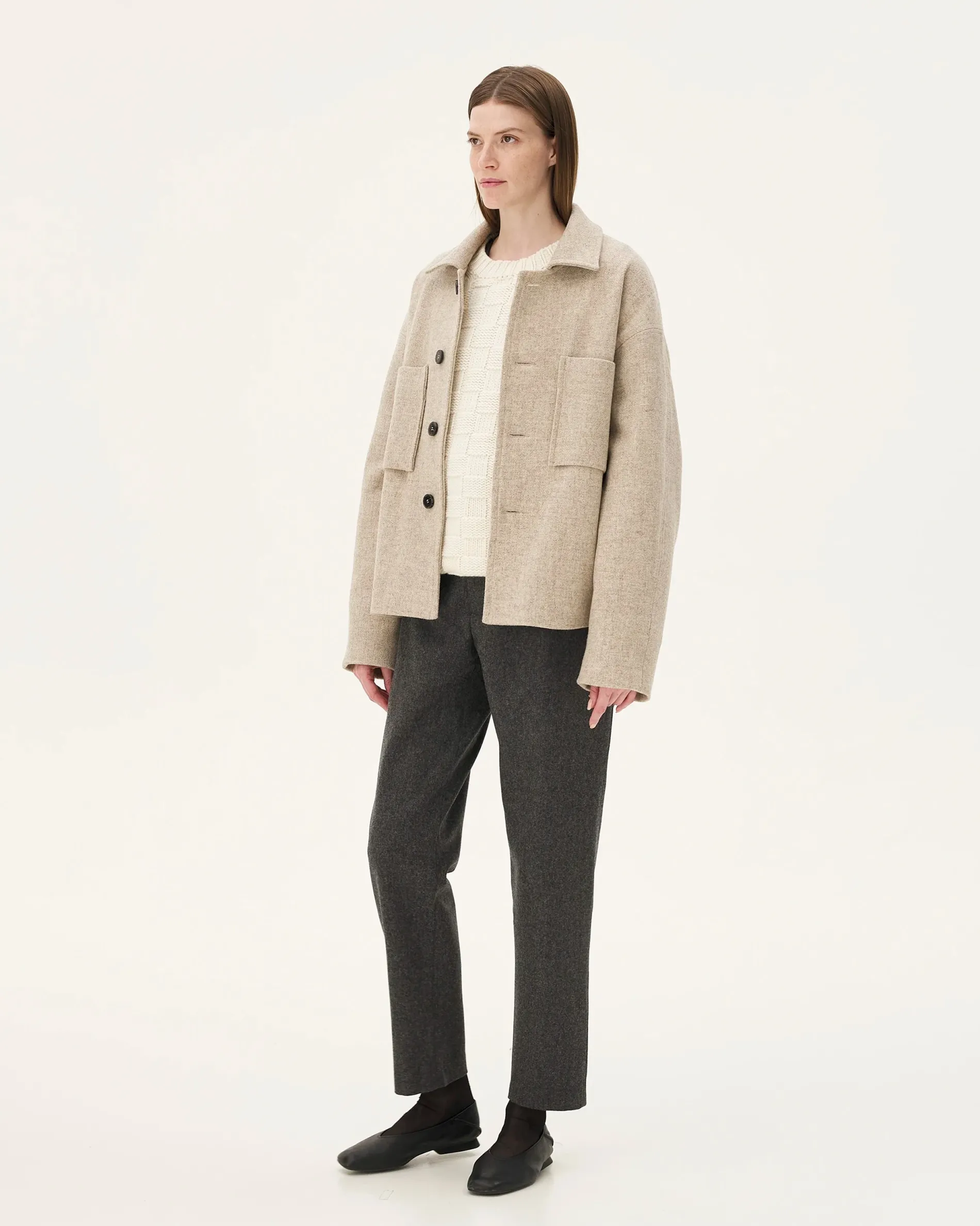 Le modèle Holar est une veste de style sur-chemise, courte et droite, c’est une coupe élégante et confortable. Elle est confectionné dans un drap de laine épais tissé au Portugal.