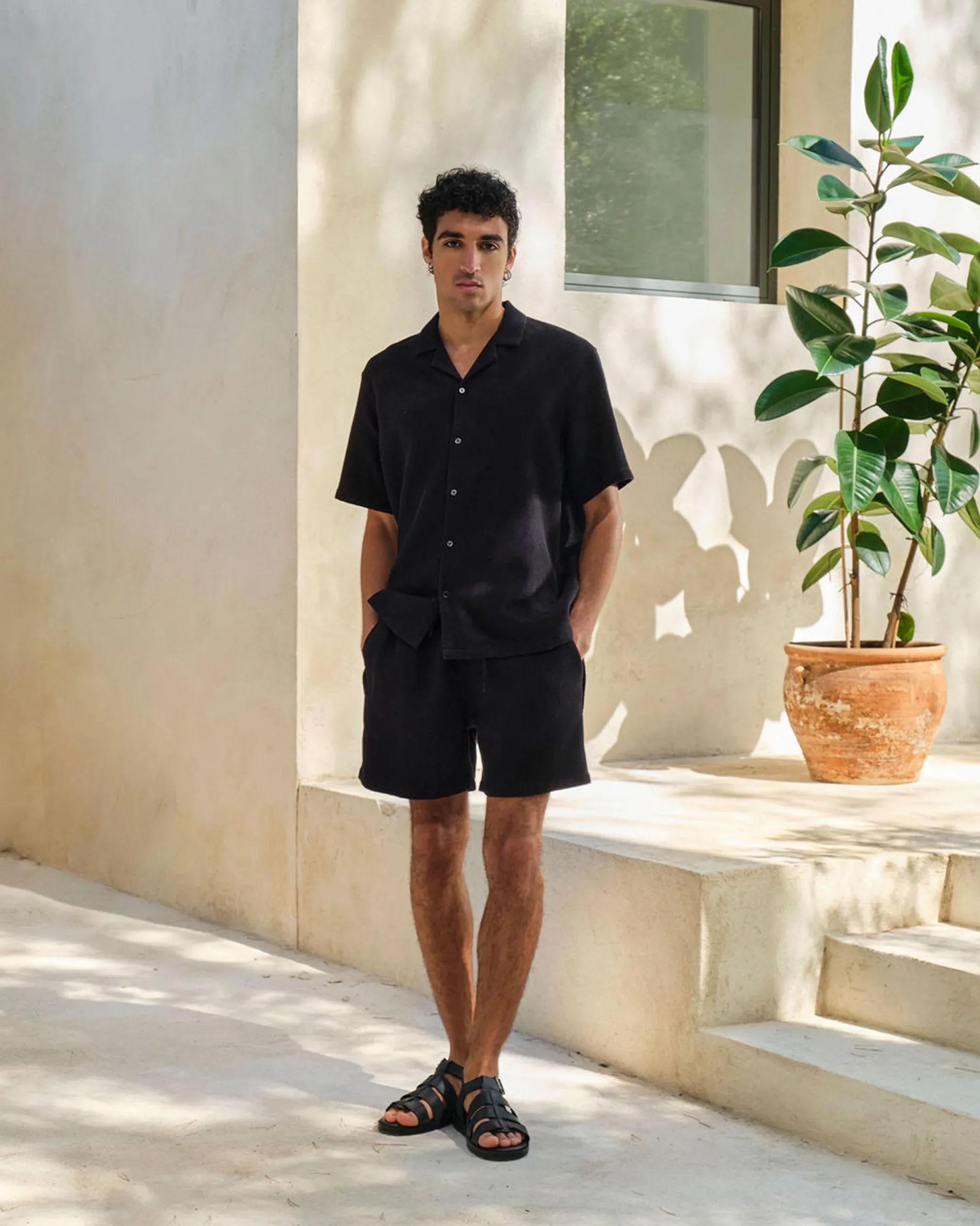 Notre chemise Orléans est inspirée des chemisettes hawaïenne des années 50. Un modèle ultra estivale à la coupe ample et au cou dégagé. Elle est confectionnée dans une toile gaufrée en coton biologique et tissée au Portugal.