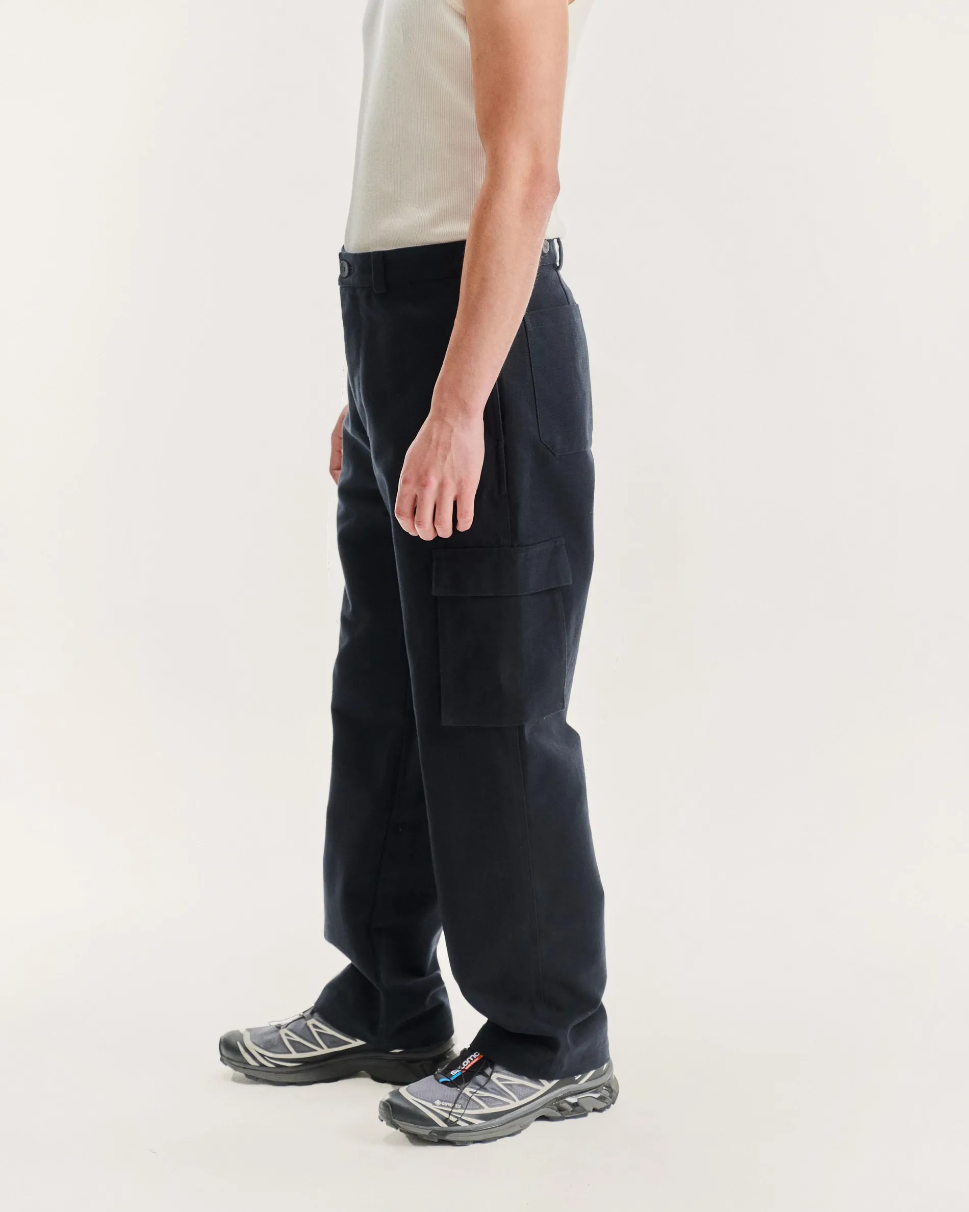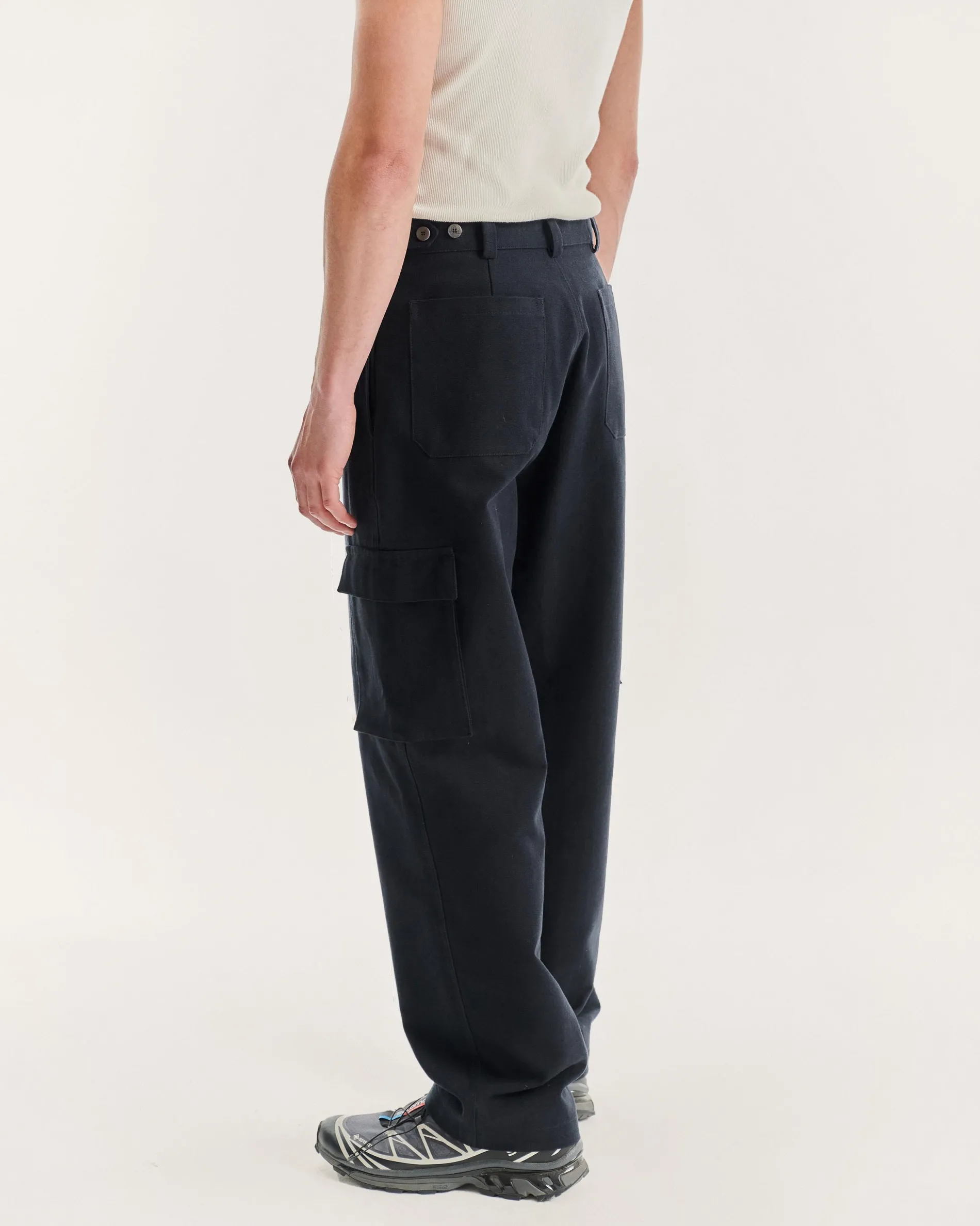 Ce pantalon revisite le cargo miliaire des années 30 avec une coupe ample et confortable. Il est confectionné dans un sergé de coton biologique à la main dense et douce.